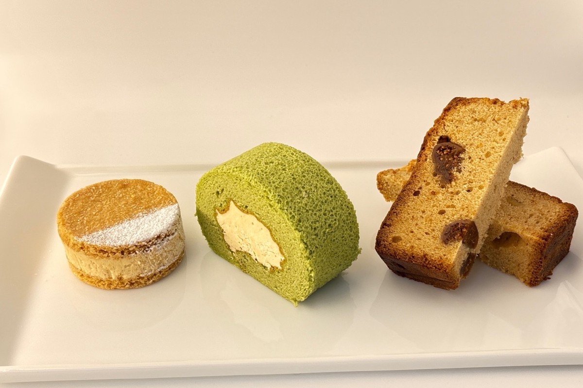 メムロピーナッツを使用したバターサンド、ロールケーキ、パウンド2種(イチジク・オレンジ)が一度に楽しめる一皿。
