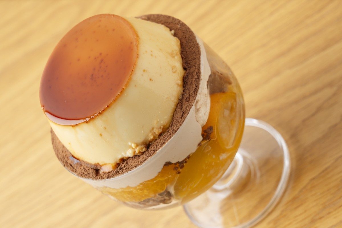 ねっちりとした食感が特徴のレトロなプリンと今月のパフェをダブルでお楽しみください。